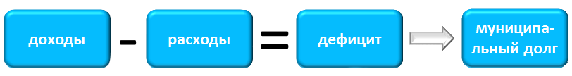 Если размер расходов бюджета превышает размер доходов, то возникает недостаток денежных средств, т.е. дефицит бюджета, который требует привлечения дополнительных средств и, соответственно, определяет размер муниципального долга. В случае, если доходы бюджета превышают расходы бюджета, возникает профицит.